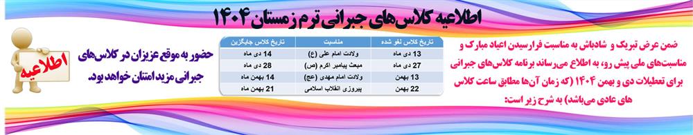 *اطلاعیه کلاسهای جبرانی در ترم زمستان ۱۴۰۴*